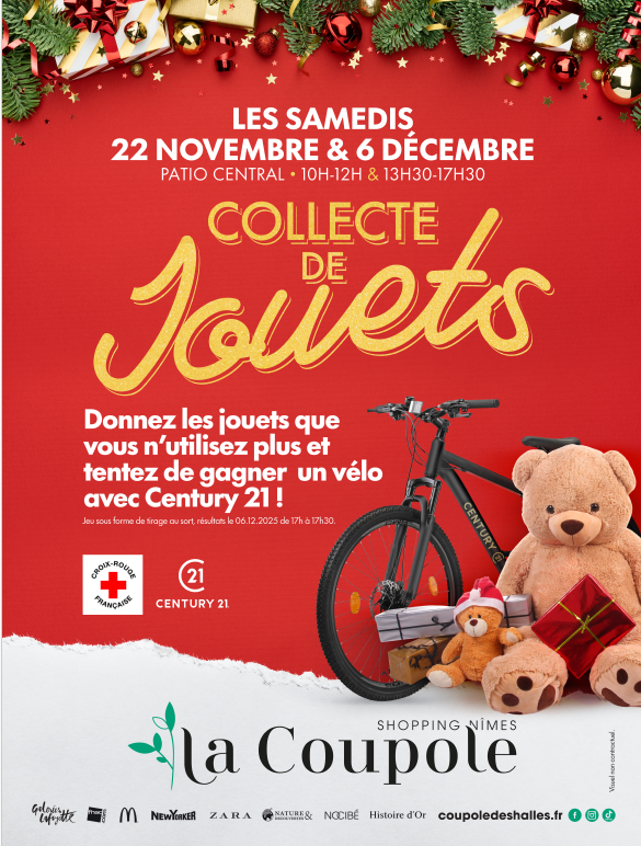 Le choix du centre commercial La Coupole n’est pas anodin. Situé au cœur de Nîmes, il bénéficie d’un passage important, d’une accessibilité optimale et d’une notoriété locale forte. Pour les Nîmois, déposer un jouet devient ainsi simple, rapide et intégré à leur quotidien.