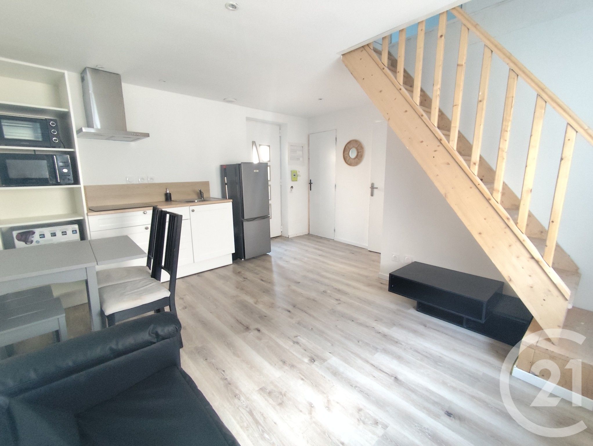 Au rez-de-chaussée, vous apprécierez une agréable pièce de vie lumineuse avec son coin cuisine, une chambre, une salle d'eau moderne ainsi qu'un toilette séparé.